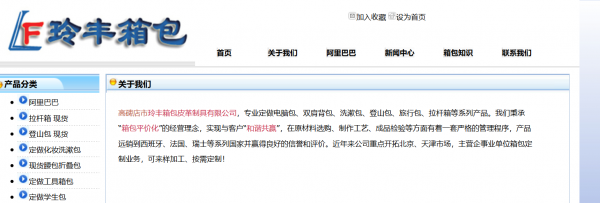 高碑店市玲豐箱包皮革制具有限公司選用我司企業(yè)的網(wǎng)站設(shè)計優(yōu)化產(chǎn)品,其seo關(guān)鍵詞為箱包,定制有針對性的SEO優(yōu)化執(zhí)行方案,根據(jù)盈利模式和核心產(chǎn)品選擇更適合的精準關(guān)鍵詞。配備專業(yè)SEO優(yōu)化團隊,項目前期做好市場、企業(yè)定位、目標用戶、盈利模式分析 高碑店市玲豐箱包皮革制具有限公司成立于2005年,是經(jīng)天津市市場監(jiān)督管理局審核的有資質(zhì)的公司。公司地址:天津市津南區(qū)咸水沽鎮(zhèn)枕流公寓4-1-1204,