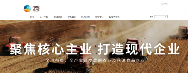 中*集團有限公司(COFCO)是立足中國的國際一流糧食企業(yè),是全球布局、全產(chǎn)業(yè)鏈、擁有最大市場和發(fā)展?jié)摿Φ霓r(nóng)業(yè)及糧油食品企業(yè),集貿(mào)易、加工、銷售、研發(fā)于一體的投資控股公司。中糧集團以“確保國家糧食安全,把中國人的飯碗牢牢端在自己手中”為己任,致力于打造具有全球競爭力的世界一流糧食企業(yè),構(gòu)建具有中糧特色的國有資本投資公司。