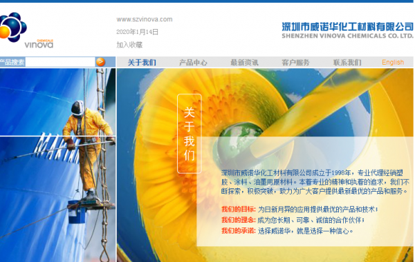 深圳市威諾華化工材料有限公司成立于1998年,專業(yè)代理經銷塑膠、涂料、油墨用原材料。本著專業(yè)的精神和執(zhí)著的追求,我們不斷探索,積極突破,致力為廣大客戶提供最新最優(yōu)的產品和服務。 我們的目標: 為日新月異的應用提供最優(yōu)的產品和技術; 我們的理念: 成為您長期、可靠、誠信的合作伙伴; 我們的承諾: 選擇威諾華,就是選擇一種信心。