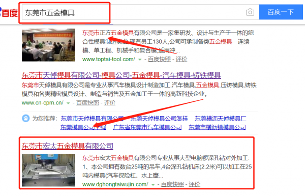 我們公司與東莞市宏太五金模具有限公司合作中,對這個公司所經(jīng)營的五金模具這個行業(yè)提供了百度快照排名,與該公司的合作,更多的客戶讓我們公司為其提供百度快照排名,通過每一次合作,我們公司不斷完善自己,同時希望合作伙伴在經(jīng)營的路上越來越好。