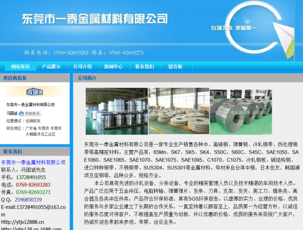 東莞市一*金屬材料有限公司選用我司企業(yè)的網(wǎng)站設(shè)計(jì)優(yōu)化產(chǎn)品,其seo關(guān)鍵詞為高碳鋼、彈簧鋼、冷軋鋼帶、熱處理鋼帶等高精密材料 定制有針對性的SEO優(yōu)化執(zhí)行方案,根據(jù)盈利模式和核心產(chǎn)品選擇更適合的精準(zhǔn)關(guān)鍵詞。配備專業(yè)SEO優(yōu)化團(tuán)隊(duì),項(xiàng)目前期做好市場、企業(yè)定位、目標(biāo)用戶、盈利模式分析, 東莞市一*金屬材料有限公司成立于2016年,是經(jīng)東莞市市場監(jiān)督管理局審核的有資質(zhì)的公司,其統(tǒng)一社會信用代碼:91441900**065101101P。公司地址:東莞市大朗鎮(zhèn)洋烏村校椅圍五路52號