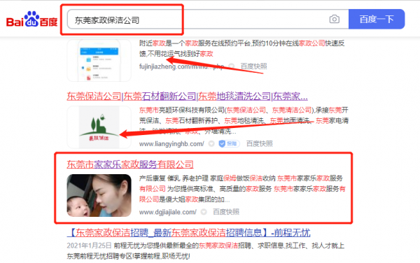 東莞市*家樂家政服務有限公司整站優(yōu)化到首頁按天扣費