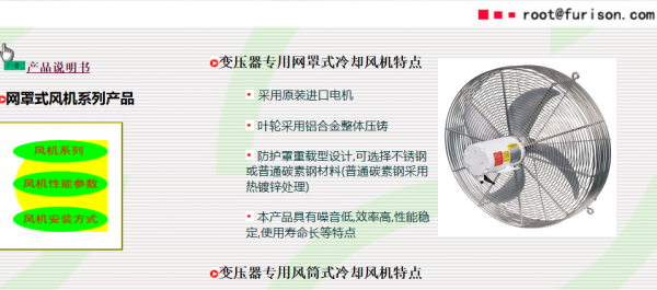 佛山市富利明電力電器配件有限公司是加拿大外商獨(dú)資企業(yè)。引進(jìn)北美先進(jìn)技術(shù),專業(yè)生產(chǎn)網(wǎng)罩式變壓器冷卻風(fēng)機(jī),風(fēng)機(jī)控制柜,電纜接線盒等系列變壓器配套產(chǎn)品。冷卻風(fēng)機(jī)選用原裝電機(jī),葉輪采用航空螺旋漿設(shè)計(jì)技術(shù),低噪音,低能耗,散熱效果極佳;風(fēng)機(jī)控制柜具有多種系列,綜合傳統(tǒng)的機(jī)電繼電開(kāi)關(guān)技術(shù)和先進(jìn)的電力電子開(kāi)關(guān)技術(shù),適用各種變壓器冷卻機(jī)組的動(dòng)力控制,并滿足電力運(yùn)行部門(mén)"三遙"要求;接線盒適用于冷卻風(fēng)機(jī)與控制柜的電纜連接,易拔插、防塵、防水,便于安裝及日常維護(hù)。我司是ISO認(rèn)證企業(yè),具有良好的信譽(yù),合理的價(jià)格,完善的售后服務(wù)及全面質(zhì)保承諾,誠(chéng)信地為廣大用戶服務(wù)。