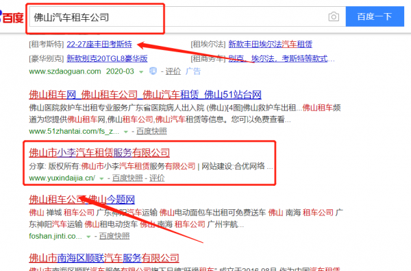 我們公司與佛山市小李汽車租賃服務有限公司合作中,對這個公司所經(jīng)營的汽車租車這個行業(yè)提供了百度快照排名,與該公司的合作,更多的客戶讓我們公司為其提供百度快照排名,通過每一次合作,我們公司不斷完善自己,同時希望合作伙伴在經(jīng)營的路上越來越好。