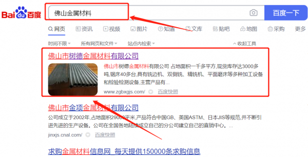 佛山市樹*金屬材料有限公司網(wǎng)站SEO優(yōu)化最快上詞效果展示