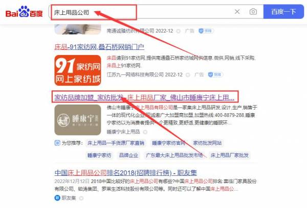 佛山市睡康*床上用品有限公司萬(wàn)詞霸屏最快上詞效果展示