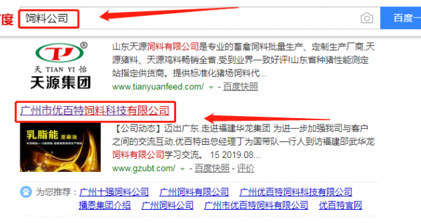 我們公司與廣州市優(yōu)百特飼料科技有限公司合作中,對(duì)這個(gè)公司所經(jīng)營(yíng)的飼料這個(gè)行業(yè)提供了百度快照排名,與改公司的合作,更多的客戶(hù)讓我們公司為其提供百度快照排名,通過(guò)每一次合作,我們公司不斷完善自己,同時(shí)希望合作伙伴在經(jīng)營(yíng)的路上越來(lái)越好。