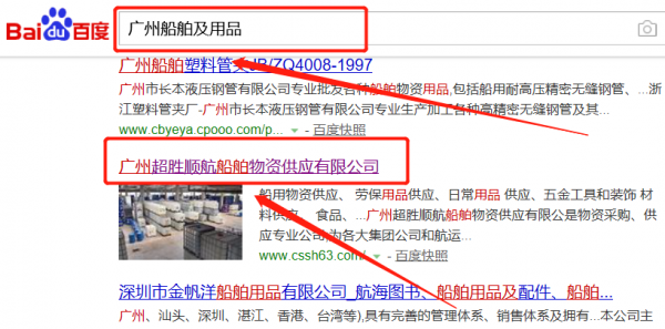 廣州超勝順航船舶物資供應(yīng)有限公司與本司簽約百度快照排名協(xié)議
