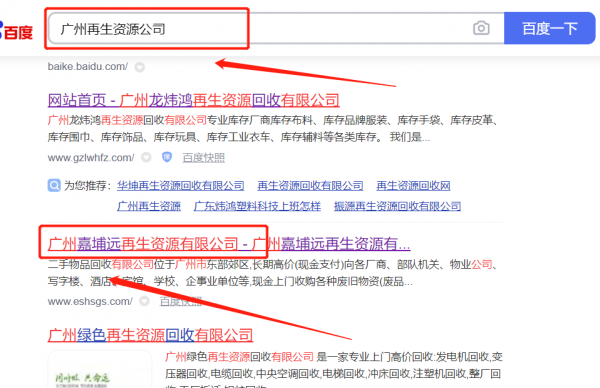 廣州*埔遠(yuǎn)再生資源有限公司萬詞霸屏保證在首頁效果