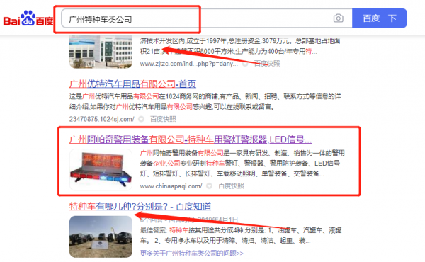 我們公司與廣州阿*奇警用裝備有限公司合作中,對(duì)這個(gè)公司所經(jīng)營(yíng)的特種車(chē)類(lèi)這個(gè)行業(yè)提供了百度排名,與該公司的合作,更多的客戶讓我們公司為其提供百度快照排名,通過(guò)每一次合作,我們公司不斷完善自己,同時(shí)希望合作伙伴在經(jīng)營(yíng)的路上越來(lái)越好。