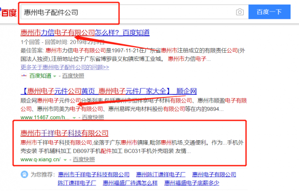 我們公司與惠州市千祥電子科技有限公司合作中,對(duì)這個(gè)公司所經(jīng)營(yíng)的電子配件這個(gè)行業(yè)提供了百度快照排名,與該公司的合作,更多的客戶讓我們公司為其提供搜索引擎優(yōu)化推廣,通過(guò)每一次合作,我們公司不斷完善自己,同時(shí)希望合作伙伴在經(jīng)營(yíng)的路上越來(lái)越好。