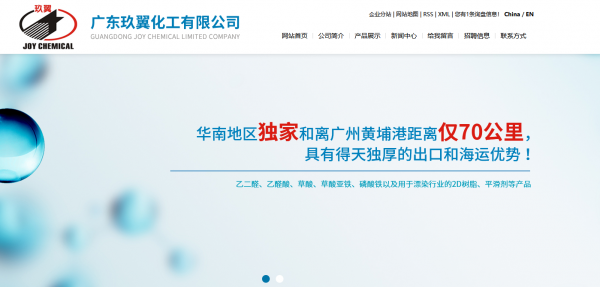 廣東玖*化工有限公司是一家以研發(fā)、生產(chǎn)乙二醛及其下游產(chǎn)品---乙醛酸為主打產(chǎn)品的一家化工公司,成立于2016年8月,注冊(cè)資金1000萬(wàn)元,座落在廣東惠州市博羅縣園洲樺陽(yáng)工業(yè)園內(nèi),是從廣東宏源新材料科技有限公司獨(dú)立出來的公司,以專業(yè)生產(chǎn)高新科技產(chǎn)品為目標(biāo),目前公司生產(chǎn)的產(chǎn)品有:乙二醛、乙醛酸、草酸、草酸亞鐵、磷酸鐵以及用于漂染行業(yè)的2D樹脂、平滑劑等產(chǎn)品,乙二醛年產(chǎn)12000噸,乙醛酸年產(chǎn)7000噸,磷酸鐵年產(chǎn)5000噸。乙二醛是重要的精細(xì)化工產(chǎn)品,它廣泛用于各種行業(yè)中:醫(yī)藥上,由乙二醛合成的乙醛酸,其下游產(chǎn)品對(duì)羥基苯甘氨酸,廣泛用于阿母西林、青霉素的合成。工業(yè)上,合成M-2D樹脂,廣泛用于織物的抗縮、抗皺整理劑;生產(chǎn)改進(jìn)紙張表面的抗水性能的交聯(lián)劑;制備絮凝劑,作為工業(yè)或城市用水凈化劑;與異丁醛的縮合產(chǎn)品可用作牛皮的鞣革劑;還可生產(chǎn)火箭推進(jìn)劑的組分;在醫(yī)療衛(wèi)生上,生產(chǎn)殺菌消毒劑,高效除臭劑;在建材上,生產(chǎn)固化劑、穩(wěn)定劑、添加劑等等。