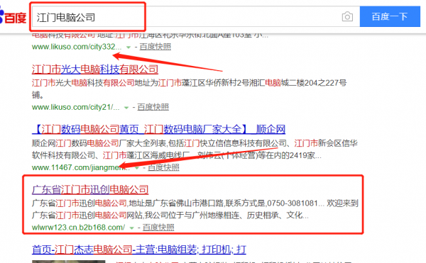 我們公司與江門市迅創(chuàng)電腦公司合作中,對(duì)這個(gè)公司所經(jīng)營(yíng)的電腦這個(gè)行業(yè)提供了SEO網(wǎng)站優(yōu)化,與該公司的合作,更多的客戶讓我們公司為其提供百度快照排名,通過每一次合作,我們公司不斷完善自己,同時(shí)希望合作伙伴在經(jīng)營(yíng)的路上越來越好。