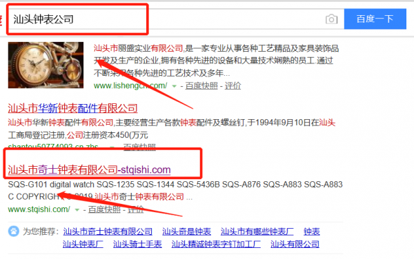 汕頭市奇士鐘表有限公司與我司簽下百度霸屏協(xié)議