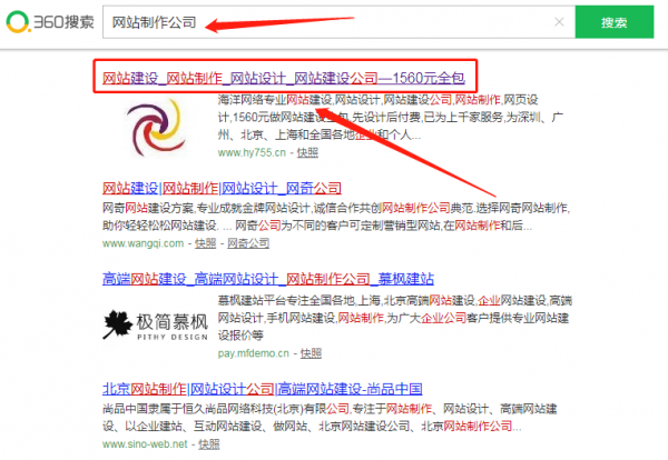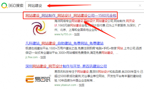 海洋網(wǎng)絡(luò)在360搜索引擎中網(wǎng)站建設(shè)排名第一位