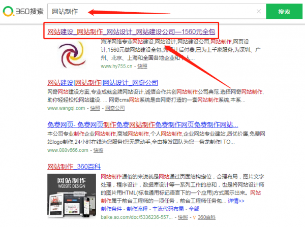 海洋網(wǎng)絡(luò)在360搜索引擎中優(yōu)化關(guān)鍵詞處于第一位