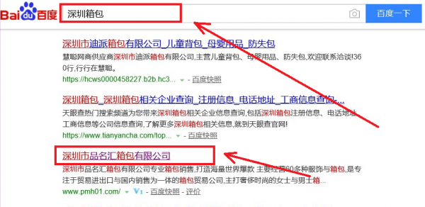 我們公司與深圳市品名匯箱包有限公司合作中,對(duì)這個(gè)公司所經(jīng)營的箱包這個(gè)行業(yè)提供了百度快照排名,與該公司的合作,更多的客戶讓我們公司為其提供百度快照排名,通過每一次合作,我們公司不斷完善自己,同時(shí)希望合作伙伴在經(jīng)營的路上越來越好。