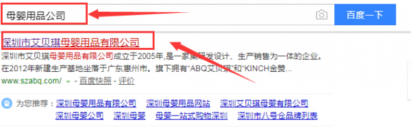 深圳市艾貝琪母嬰用品有限公司選用我司企業(yè)母嬰用品行業(yè)的網(wǎng)站優(yōu)化產(chǎn)品,其SEO關(guān)鍵詞有深圳市艾貝琪母嬰用品有限公司、母嬰用品、奶瓶、ABQ艾貝琪、KINCH金贊、母嬰用品加盟。3-15天快速提升網(wǎng)站前五頁關(guān)鍵詞排名上百度首頁,幫助客戶增加流量,提高成交量,為您帶來更多潛在客戶,打造客戶品牌影響力。深圳市艾貝琪母嬰用品有限公司成立于2005年,是經(jīng)深圳市市場監(jiān)督管理局審核的有資質(zhì)的公司,其統(tǒng)一社會信用代碼:91440300777155140Y。公司地址:深圳市龍崗區(qū)橫崗街道二二八工業(yè)區(qū)10棟402、403。