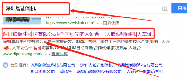 我們公司與深圳迪派生科技有限公司合作中,對這個公司所經(jīng)營的智能閘機這個行業(yè)提供了關(guān)鍵詞搜索排名,與該公司的合作,更多的客戶讓我們公司為其提供關(guān)鍵詞搜索排名,通過每一次合作,我們公司不斷完善自己,同時希望合作伙伴在經(jīng)營的路上越來越好。