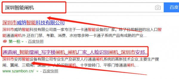 我們公司與深圳市安邦智能設(shè)備有限公司合作中,對這個公司所經(jīng)營的智能閘機(jī)這個行業(yè)提供了關(guān)鍵詞搜索排名,與該公司的合作,更多的客戶讓我們公司為其提供關(guān)鍵詞搜索排名,通過每一次合作,我們公司不斷完善自己,同時希望合作伙伴在經(jīng)營的路上越來越好。