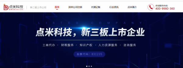 深圳市點*企業(yè)服務與咨詢有限公司是點米科技(股票代碼:831235)集團下子公司,為企業(yè)提供全領(lǐng)域綜合解決方案:咨詢服務、人力資源服務、財稅服務、工商服務、知識產(chǎn)權(quán)等企業(yè)服務。服務線下客戶近 5000 多家,線上客戶 60 多萬家,遍布銀行、互聯(lián)網(wǎng)、房地產(chǎn)、快遞物流、家居、通信、酒店、教育、培訓、服務等領(lǐng)域。