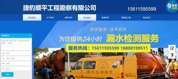 北京捷豹順平工程勘察有限公司選用我司企業(yè)工程勘察行業(yè)的網(wǎng)站優(yōu)化產(chǎn)品,其SEO關(guān)鍵詞有 管道查漏,地下管道查漏,地下自來水管道查漏,地下自來水查漏,自來水管道查漏,自來水查漏,消防管道查漏,地下消防管道查漏,水管查漏,地下水管查漏,管道測漏 ,地下管道測漏 ,地下自來水管道測漏 ,地下自來水測漏,自來水管道測漏 ,自來水測漏 ,消防管道查漏 ,地下消防管道測漏 ,水管測漏,地下水管測漏,管道檢漏,地下管道檢漏 ,地下自來水管道檢漏 ,地下自來水檢漏。其特點是用很合適的展示方式、展示效果、站點框架,把客戶及其用戶很關(guān)心的問題突出表現(xiàn);并以簡潔明朗的設(shè)計風(fēng)格,清晰展現(xiàn)公司水平實力,確保一秒抓住目標用戶眼球,給用戶留下良好的第一印象。北京捷豹順平工程勘察有限公司成立于2019年,是經(jīng)北京市市場監(jiān)督管理局審核的有資質(zhì)的公司,其統(tǒng)一社會信用代碼:91110111MA01HU328R 。公司地址:北京市東城區(qū)廣渠門內(nèi)白橋大街22號北京工商聯(lián)大廈。