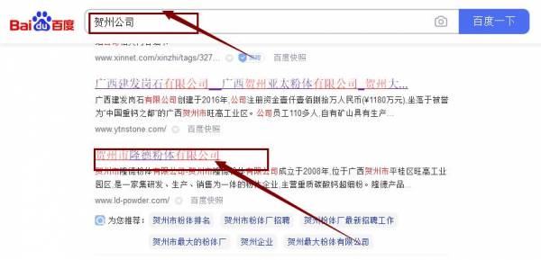 賀州市隆*粉體有限公司網(wǎng)站優(yōu)化排名效果展示