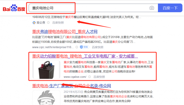 重慶安*威蓄電池科技有限公司選用我司企業(yè)電池的網(wǎng)站優(yōu)化產(chǎn)品,其SEO關(guān)鍵詞有電池。推廣效果直觀展示,智能化跟蹤分析;報(bào)表日日更新,實(shí)時(shí)查看,盡情掌握推廣動(dòng)態(tài),讓系統(tǒng)代替人工,自動(dòng)化處理大量繁瑣操作將產(chǎn)品信息推廣到三千家營(yíng)銷平臺(tái),覆蓋海量客群。重慶安*威蓄電池科技有限公司成立于2016年,是經(jīng)重慶市市場(chǎng)監(jiān)督管理局審核的有資質(zhì)的公司,其統(tǒng)一社會(huì)信用代碼:91500112MA**7CALXJ。公司地址:重慶市渝北區(qū)回興街道金錦路27號(hào)1號(hào)廠房。