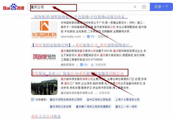 重慶振*保安服務(wù)有限公司百度關(guān)鍵詞排名最快上詞效果展示