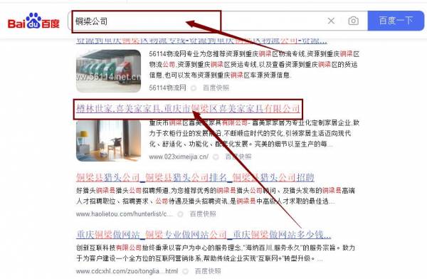 重慶市銅梁區(qū)喜*家家具有限公司百度關(guān)鍵詞排名最快上詞效果展示