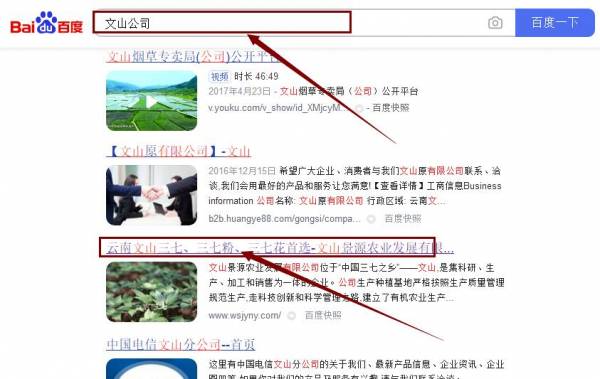 文山景*農(nóng)業(yè)發(fā)展有限公司百度排名最快上詞效果展示