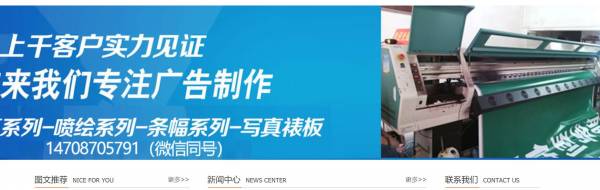 昭通UV軟*雕刻制作公司選用我司企業(yè)廣告設(shè)計(jì)行業(yè)的網(wǎng)站優(yōu)化產(chǎn)品,其SEO關(guān)鍵詞有 廣告制作公司,噴繪公司,廣告制作,噴畫公司,廣告公司,UV平板打印,昭通廣告公司,昭通鑫美數(shù)噴,昭通噴繪制作,昭通UV軟膜雕刻制作公司,昭通一站式廣告制作供應(yīng)商。其特點(diǎn)是用很合適的展示方式、展示效果、站點(diǎn)框架,把客戶及其用戶很關(guān)心的問題突出表現(xiàn);并以簡(jiǎn)潔明朗的設(shè)計(jì)風(fēng)格,清晰展現(xiàn)公司水平實(shí)力,確保一秒抓住目標(biāo)用戶眼球,給用戶留下良好的第一印象。昭通UV軟*雕刻制作公司成立于2002年,是經(jīng)昭通市市場(chǎng)監(jiān)督管理局審核的有資質(zhì)的公司,其統(tǒng)一社會(huì)信用代碼:9153280056**6597XF。公司地址:云南省昭通市昭陽區(qū)通江路和興街。