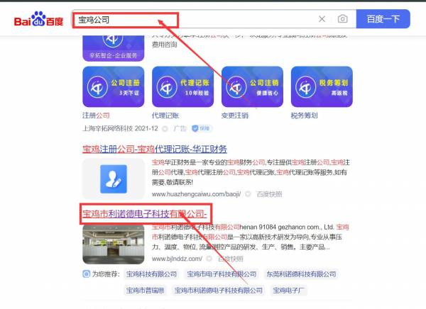 寶雞市利*德電子科技有限公司網(wǎng)站優(yōu)化最快上詞效果展示