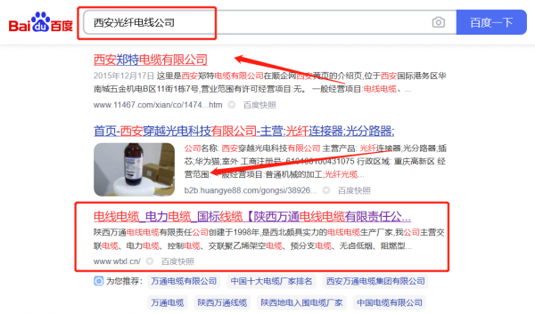 我們公司與陜西萬(wàn)*電線電纜有限責(zé)任公司合作中,對(duì)這個(gè)公司所經(jīng)營(yíng)的光纖電線這個(gè)行業(yè)提供了網(wǎng)絡(luò)營(yíng)銷,與該公司的合作,更多的客戶讓我們公司為其提供關(guān)鍵詞搜索排名,通過(guò)每一次合作,我們公司不斷完善自己,同時(shí)希望合作伙伴在經(jīng)營(yíng)的路上越來(lái)越好。