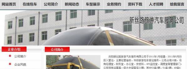 慶陽新*路旅游汽車服務(wù)有限公司于2011年1月組建,2011年5月份投入營運,主要經(jīng)營省級、市級旅游包車客運服務(wù)。公司占地10畝,設(shè)有經(jīng)理室、財務(wù)室、辦公室、安技科、GPS監(jiān)控室、調(diào)度室等管理部門。