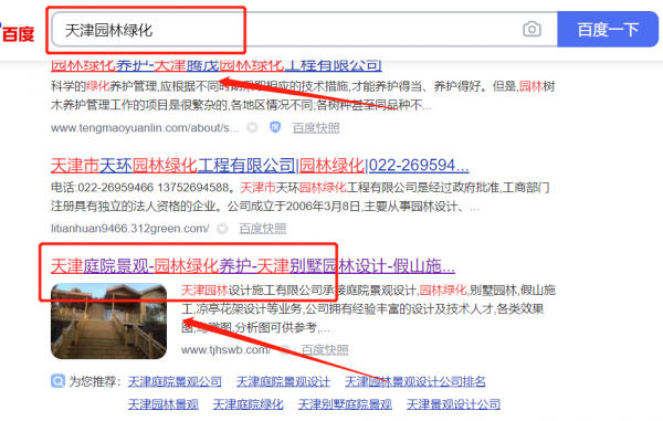 天津*林設計施工有限公司網(wǎng)絡營銷保證在首頁效果