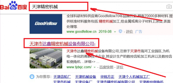 我們公司與天津市達鑫精密機械設(shè)備有限公司合作中,對這個公司所經(jīng)營的精密機械這個行業(yè)提供了百度快照排名,與該公司的合作,更多的客戶讓我們公司為其提供百度快照排名,通過每一次合作,我們公司不斷完善自己,同時希望合作伙伴在經(jīng)營的路上越來越好。