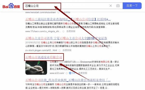 石嘴山市訊*實(shí)業(yè)有限公司百度排名效果展示
