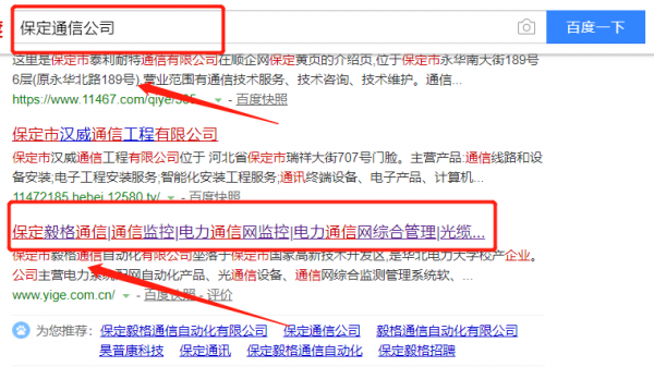 我們公司與保定市毅格通信自動化有限公司合作中,對這個公司所經(jīng)營的通信這個行業(yè)提供了SEO優(yōu)化,與該公司的合作,更多的客戶讓我們公司為其提供SEO優(yōu)化,通過每一次合作,我們公司不斷完善自己,同時希望合作伙伴在經(jīng)營的路上越來越好。