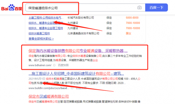 我們公司與保定海*水暖設(shè)備銷售有限公司合作中,對這個公司所經(jīng)營的暖通給排水這個行業(yè)提供了網(wǎng)站排名,與該公司的合作,更多的客戶讓我們公司為其提供SEO優(yōu)化,通過每一次合作,我們公司不斷完善自己,同時希望合作伙伴在經(jīng)營的路上越來越好。