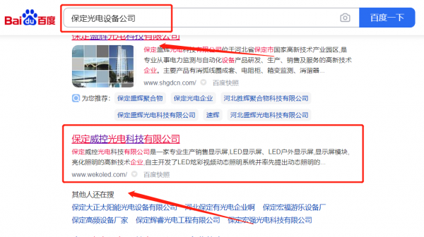 保定威*光電科技有限公司SEO保證在首頁效果