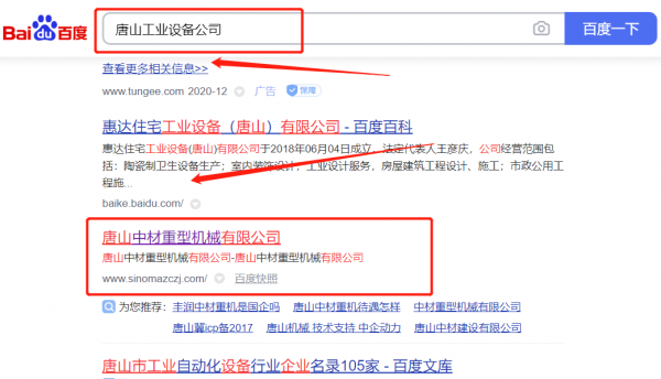 唐山*材重型機(jī)械有限公司快速排名排名效果展示