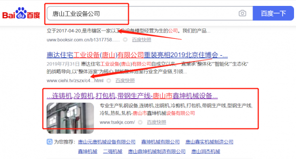 唐山市鑫*機(jī)械設(shè)備有限公司快速排名最快上詞效果展示