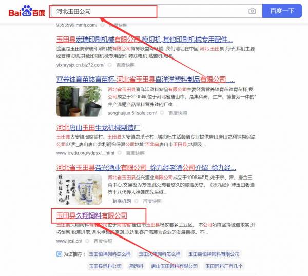 玉田縣久*飼料有限公司網(wǎng)站優(yōu)化排名效果展示