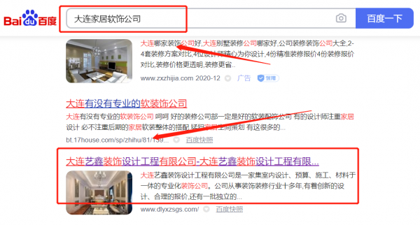 大連藝*裝飾設(shè)計工程有限公司選用我司企業(yè)家居軟飾的網(wǎng)站優(yōu)化產(chǎn)品,其SEO關(guān)鍵詞有家居軟飾。無論你關(guān)鍵詞是在20名內(nèi)、30名內(nèi)、還是50名內(nèi)。我們都可以在最短時間優(yōu)化至搜索引擎的首頁。提供后臺管理,排名查詢、關(guān)鍵詞管理、財務(wù)扣費一目了然,一鍵操作。大連藝*裝飾設(shè)計工程有限公司成立于2003年,是經(jīng)大連市市場監(jiān)督管理局審核的有資質(zhì)的公司,其統(tǒng)一社會信用代碼:912102047**392852E。公司地址:遼寧省大連市沙河口區(qū)如意街24號26層5號。