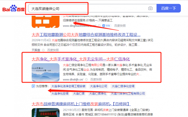 大連仁*空調(diào)凈化工程有限公司網(wǎng)絡(luò)推廣最快上詞效果展示