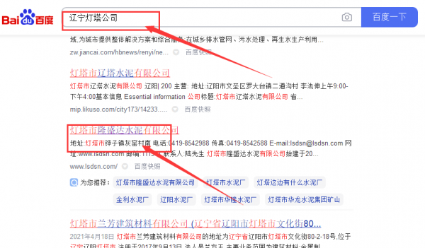 燈塔市隆*達(dá)水泥有限公司網(wǎng)站優(yōu)化到首頁按天扣費