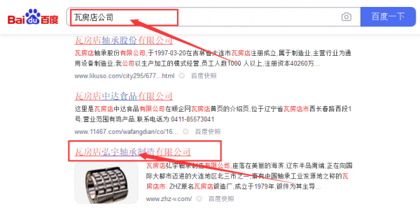 瓦房店弘*軸承制造有限公司百度關(guān)鍵詞排名效果展示
