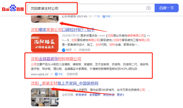 沈陽金*晶裝飾材料有限公司新站排名快上詞效果展示