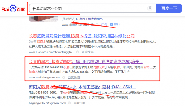 我們公司與長(zhǎng)春市*園景觀裝飾工程有限公司合作中,對(duì)這個(gè)公司所經(jīng)營(yíng)的防腐木業(yè)這個(gè)行業(yè)提供了關(guān)鍵詞推廣,與該公司的合作,更多的客戶讓我們公司為其提供快速排名,通過每一次合作,我們公司不斷完善自己,同時(shí)希望合作伙伴在經(jīng)營(yíng)的路上越來越好。